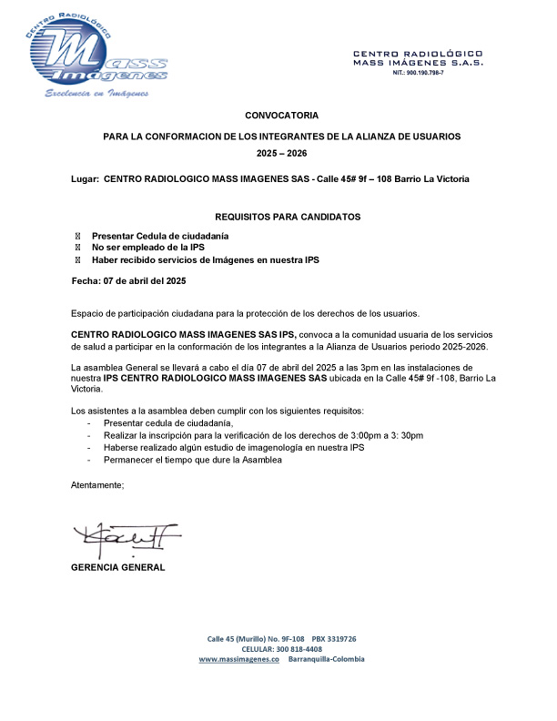CONVOCATORIA PARA LA CONFORMACIÓN DE LOS INTEGRANTES DE LA ALIANZA DE USUARIOS 2025 – 2026